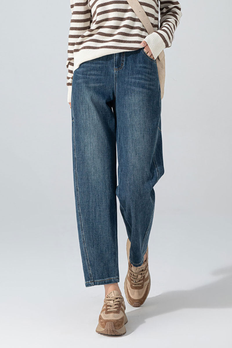 Cropped Mid-Rise Barrel-Leg Jeans
